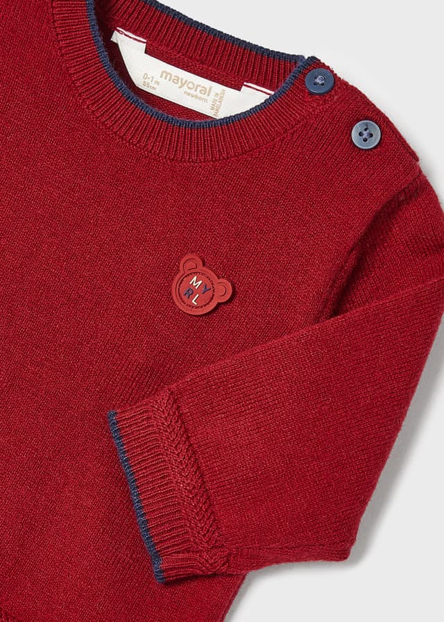 Mayoral 2396 Sweter z długim rękawem dla noworodka. Okrągły dekolt. Zapięcie na guziki na ramieniu. Trykotowa dzianina, delikatna i przyjemna w dotyku. Motyw w paski.
